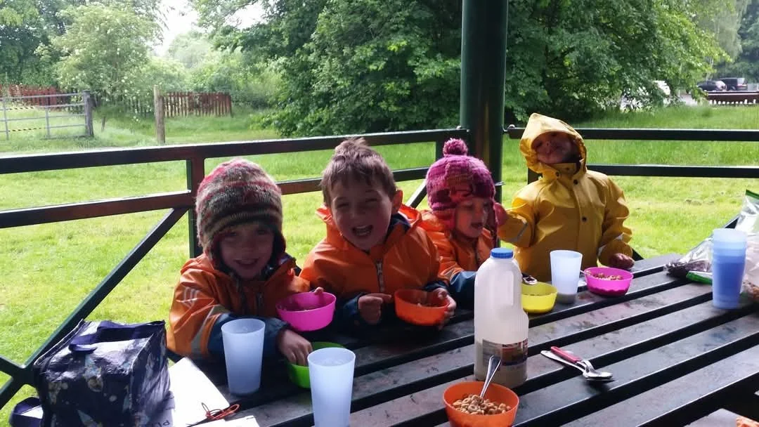 Our base camp is equipped with swings, a slackline, a mud kitchen, and loose parts for endless creative play. For those seeking more hands-on activities, we offer skill-based parties that can include whittling, saw work, and fire-lighting practice.